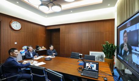 1月11日下午,我校与伦敦国王学院召开线上座谈会。校长薛其坤、副校长兼总务长鲁春、伦敦国王学院校长Shitij Kapur等进行了线上交流。